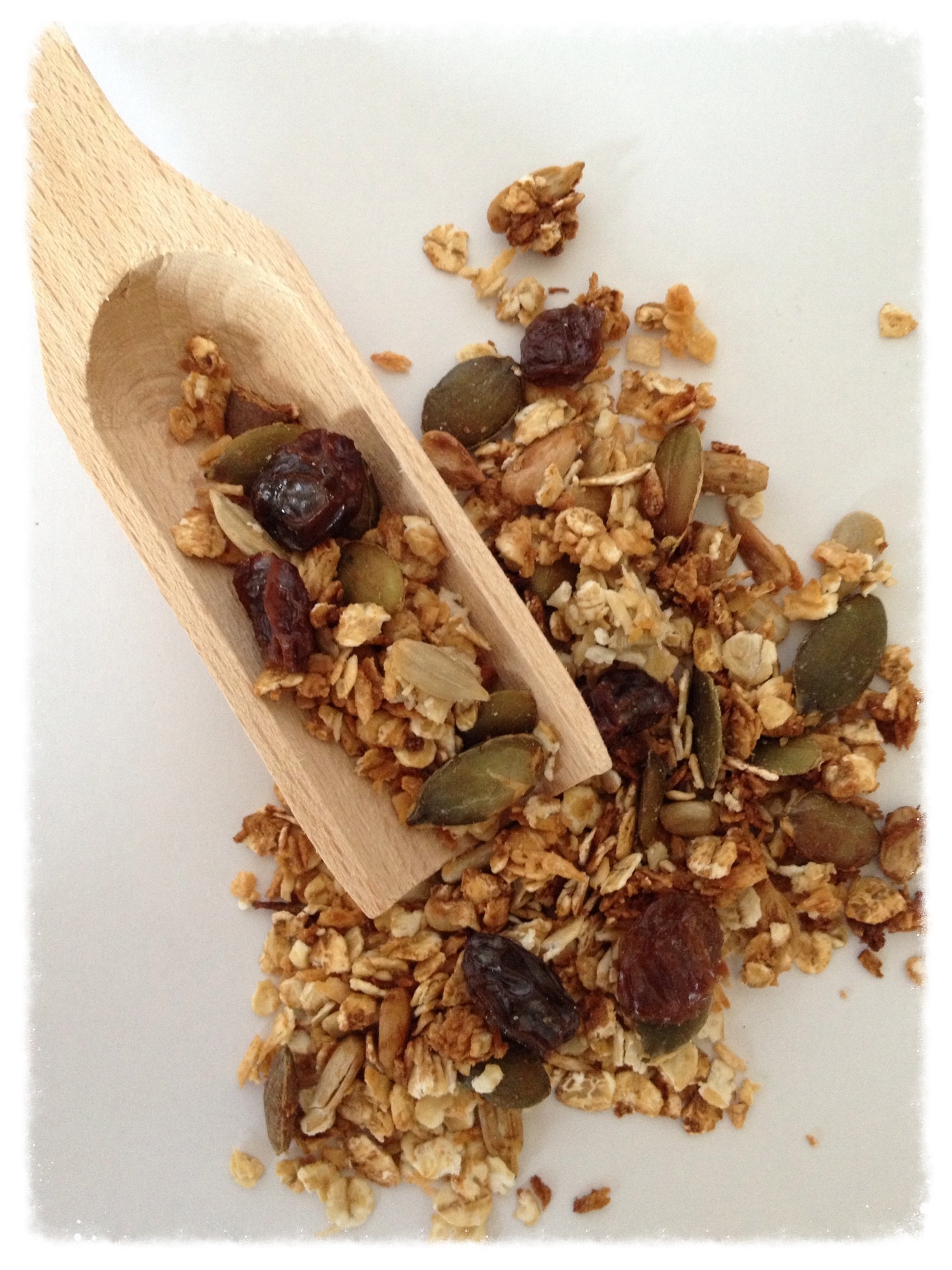Denne mysli er knasende sprød og lækker, og særligt kokosmelet er med til at give en dejlig smag. Den smager skønt med mælk eller på skyr og A38, og den er også god som drys på koldskål i stedet for kammerjunkere.