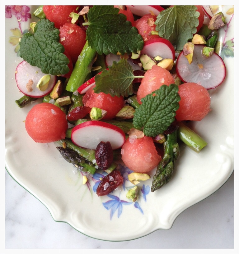 Vandmelon og fetaost er en sommerklassiker, som jeg elsker! I dag har jeg tilføjet ferskner, som med deres sødme passer så fint til den salte feta. Jeg nød salaten som en frokost i solen på min altan, og det var helt perfekt, friskt og sommerligt.