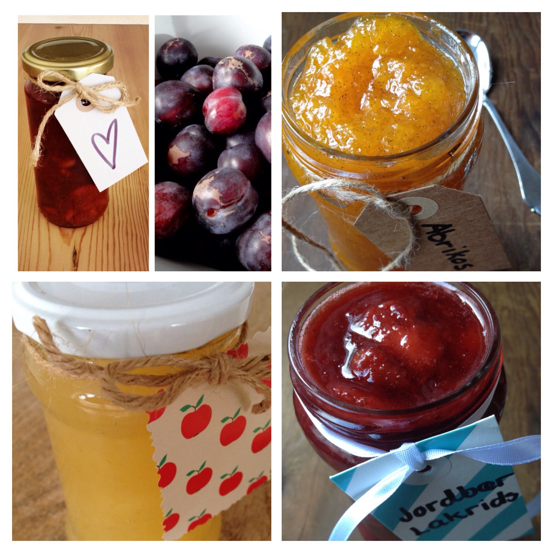 Det er tid for hjemmelavet marmelade af frugter fra haven. Her på bloggen er der nogle forskellige opskrifter – både på marmelade med efterårets frugter og andet. Prøv fx denne blommemarmelade eller denne æble/pære-marmelade. Hvis du har frosne sommerbær i fryseren eller tørrede abrikoser i skuffen, så prøv også abrikosmarmelade eller denne jordbærmarmelade med lakrids.