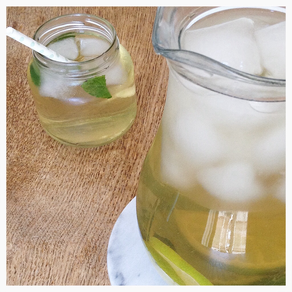 Hele Danmark koger vist i disse dage – det er SÅ varmt! Men når man som jeg er heldig at have ferie, er det nu meget dejligt med sol og sommer … Og så et det jo en god anledning til at lave kølige læskedrikke. Her følger opskriften på en forfriskende iste.