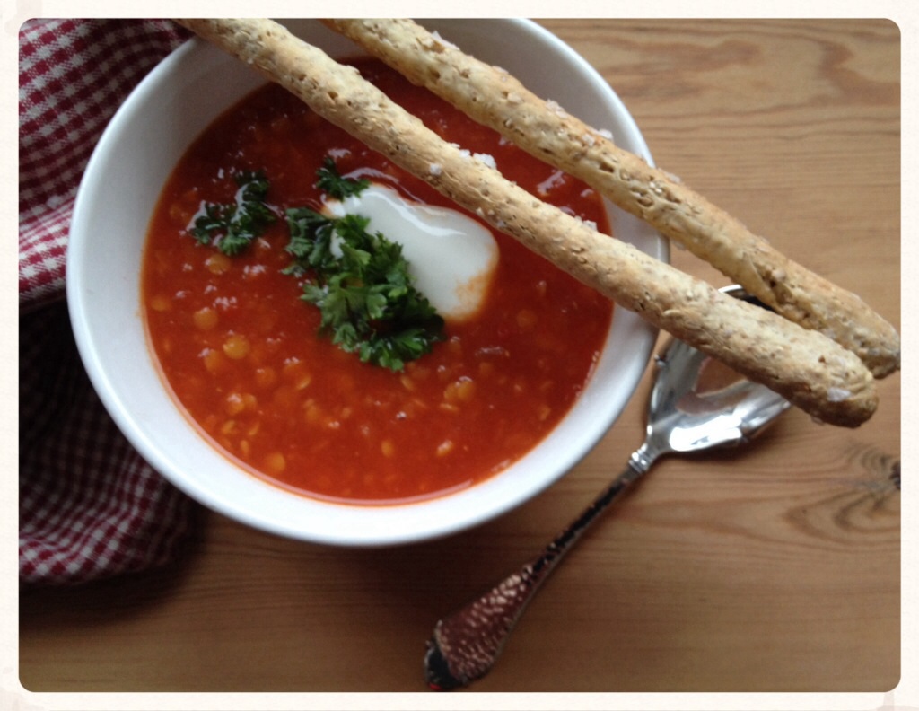 I øjeblikket mødes man af en isvind og temperaturer langt under frysepunktet, så snart man træder ud af hoveddøren. Jeg synes derfor, det må være på sin plads med en lunende suppe til aftensmaden. Der findes så mange lækre opskrifter på suppe! I dag bliver det denne linsesuppe med hjemmebagte, sprøde grisini.