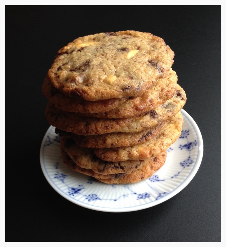 Når de nybagte cookies er afkølede lægges de sammen om et par skefulde vanilleis og lægges i fryseren ind til de skal spises.