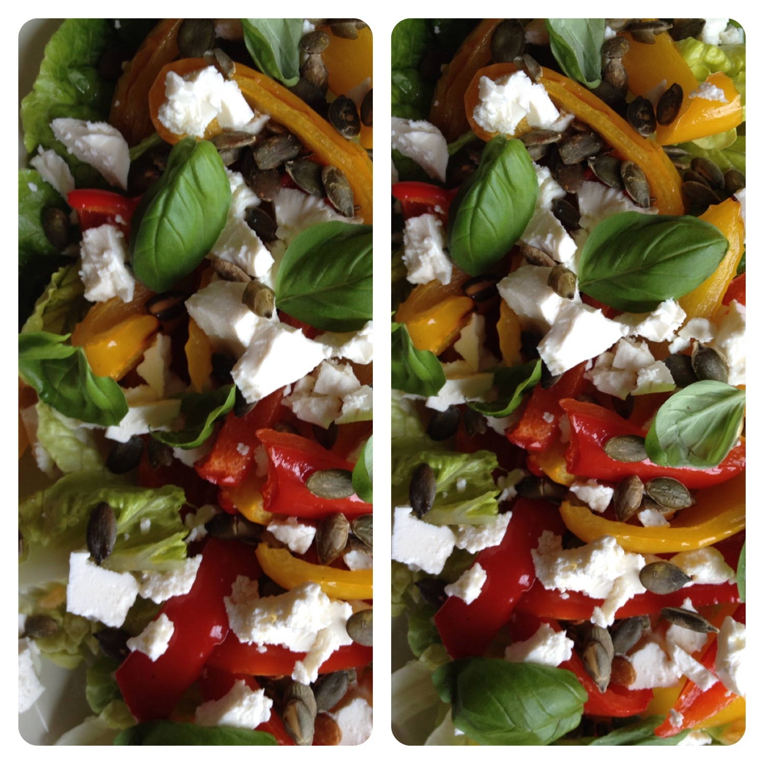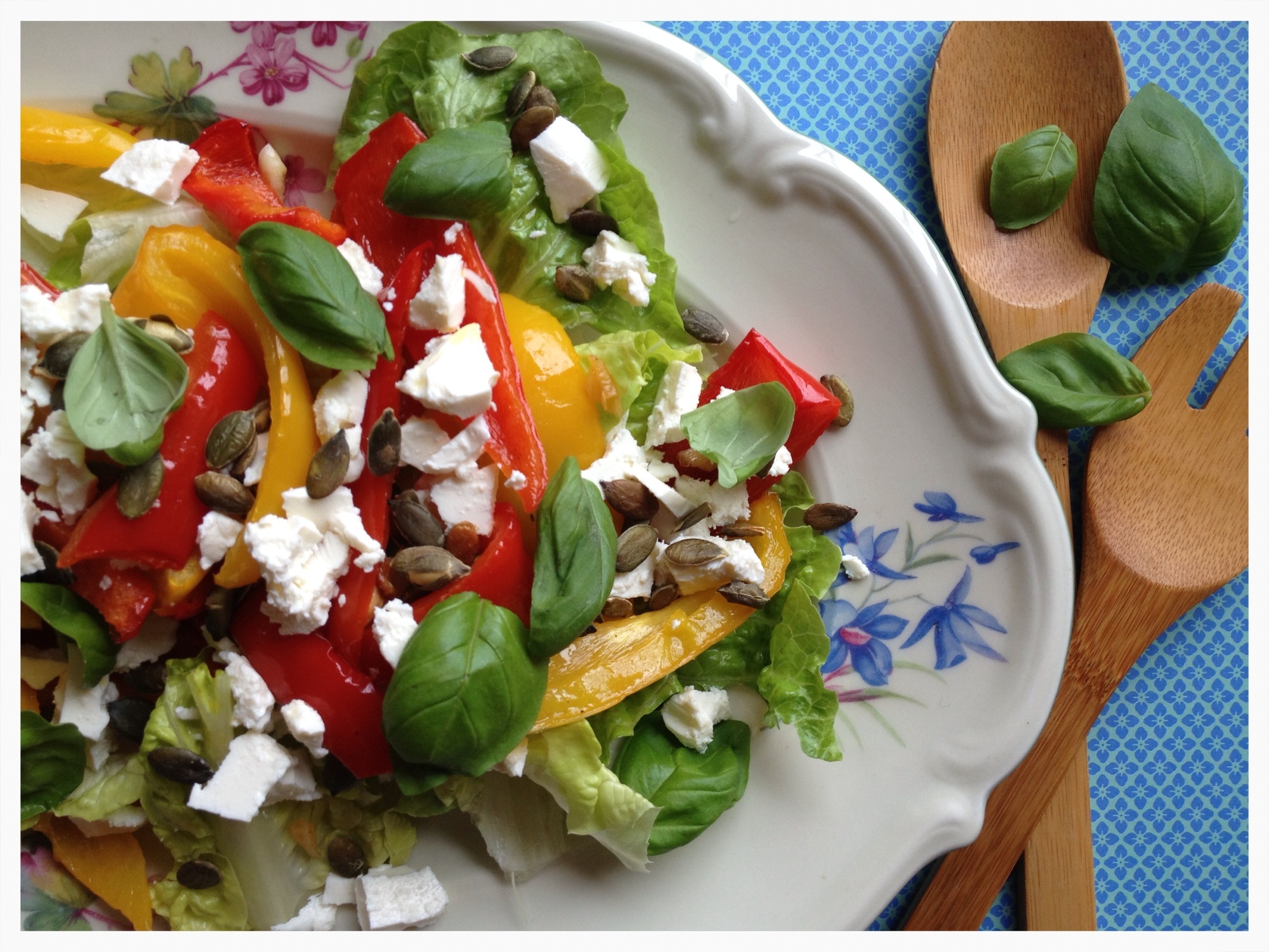 Forleden serverede jeg denne frokostsalat for en god veninde. Den er sund, nem at lave og mættende. Jeg synes granatæbler er så fine at bruge i salater, og de bidrager med en skøn syrlighed.